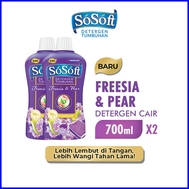 So Soft Deterjen Cair Freesia Pear Botol 700 Ml X2