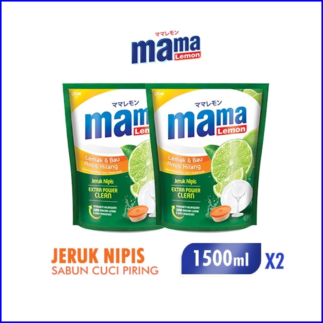 Mama Lemon Sabun Cuci Piring Jeruk Nipis Pouch 1500 Ml X2