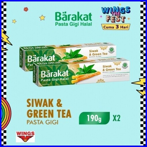Barakat Pasta Gigi Siwak Greentea Tube 190gr X2