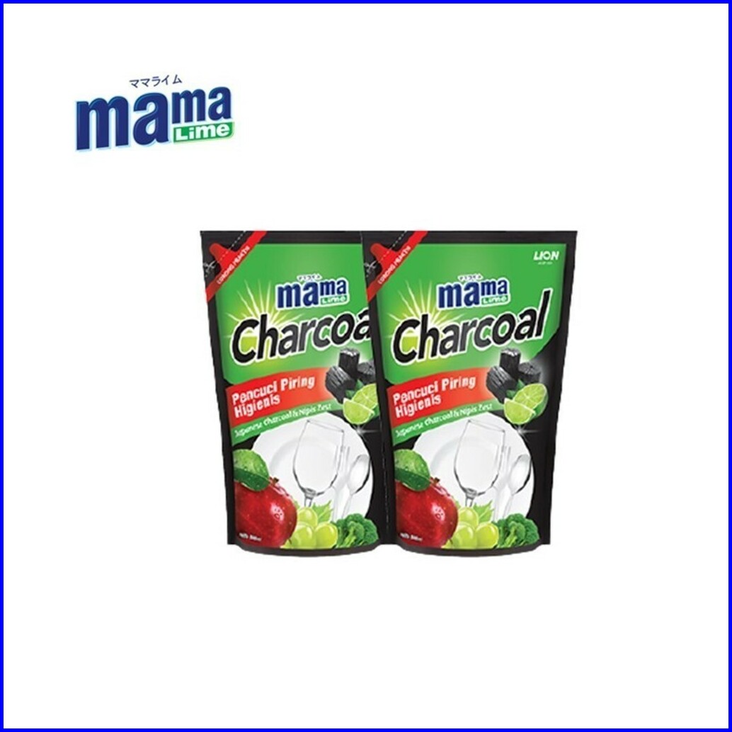 Mama Lime Sabun Cuci Piring Charcoal Pouch 680 Ml X2