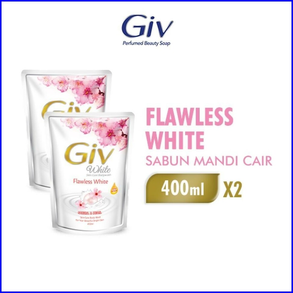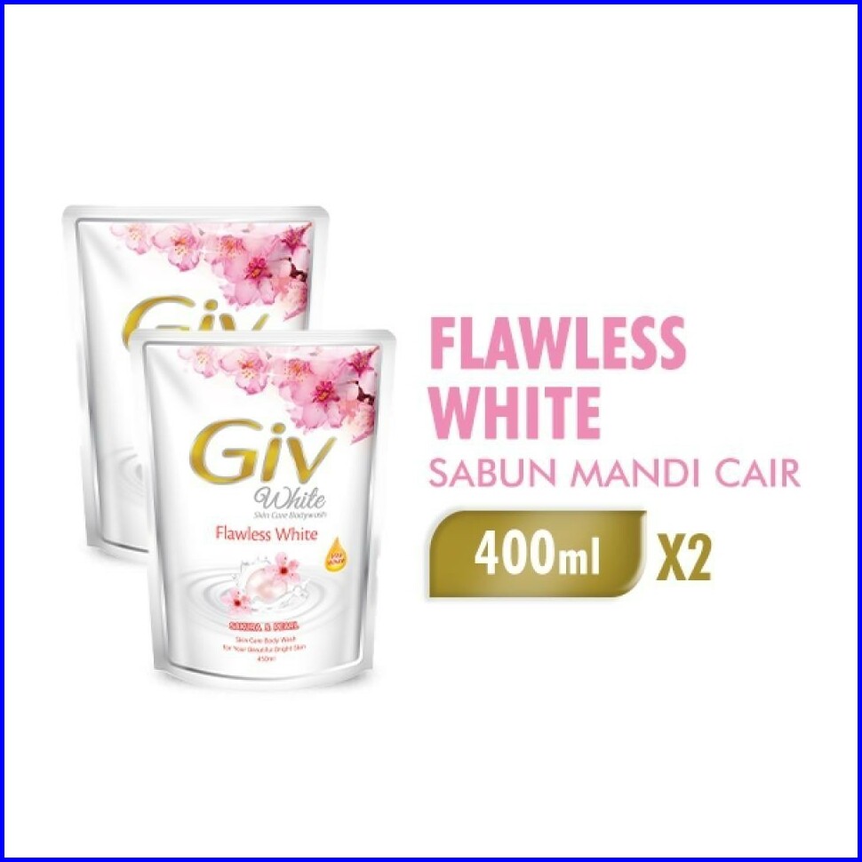 Giv Whitening White Sabun Mandi Cair Sakura Pouch 400 Ml X2