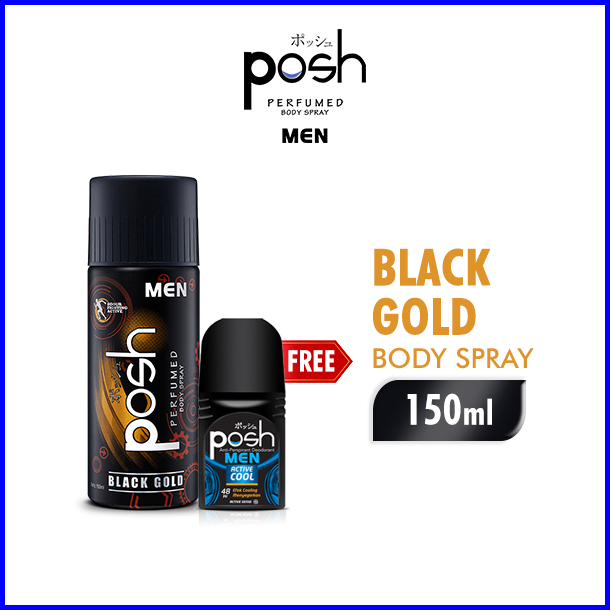 Buy 1 Get 1 Posh Spray Men Fresh Black Botol 150ml - Free Roll On Posh Men Active Cool 50 Ml