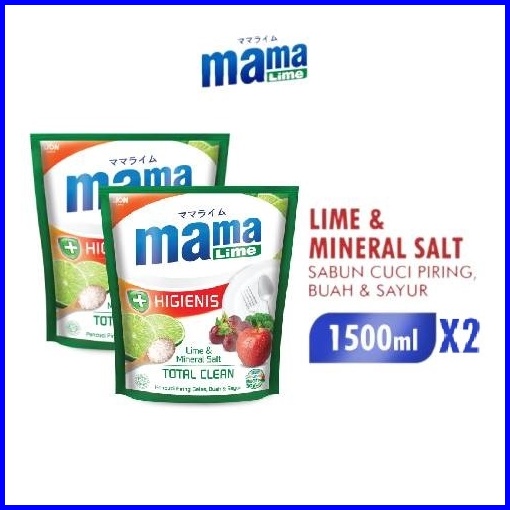 Mama Lime Sabun Cuci Piring Mineral Salt Pouch 1500 Ml X2