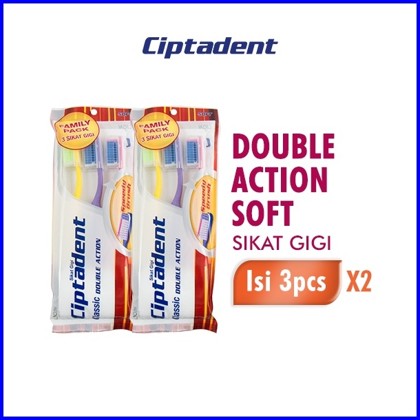 Ciptadent Sikat Gigi Classic Double Action Soft Pack Isi 3 Pcs X2