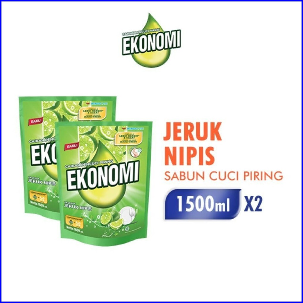 Ekonomi Power Liquid Sabun Cuci Piring Jeruk Nipis Pouch 1500 Ml X2