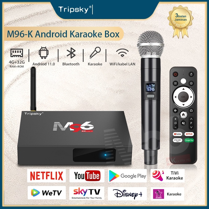 Tripsky M96-K Android tv Box Karaoke Keluarga Speaker Bluetooth 2Mic 1 Set wireless mikropon karaoke