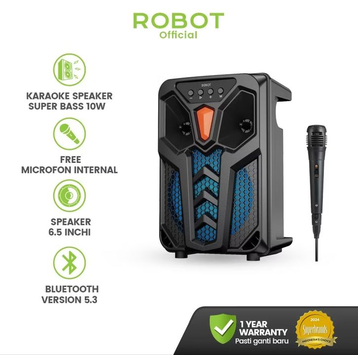 Robot RB650 Karaoke Speaker RGB Daya 50W Bluetooth 5.0 TF USB 3.5mm