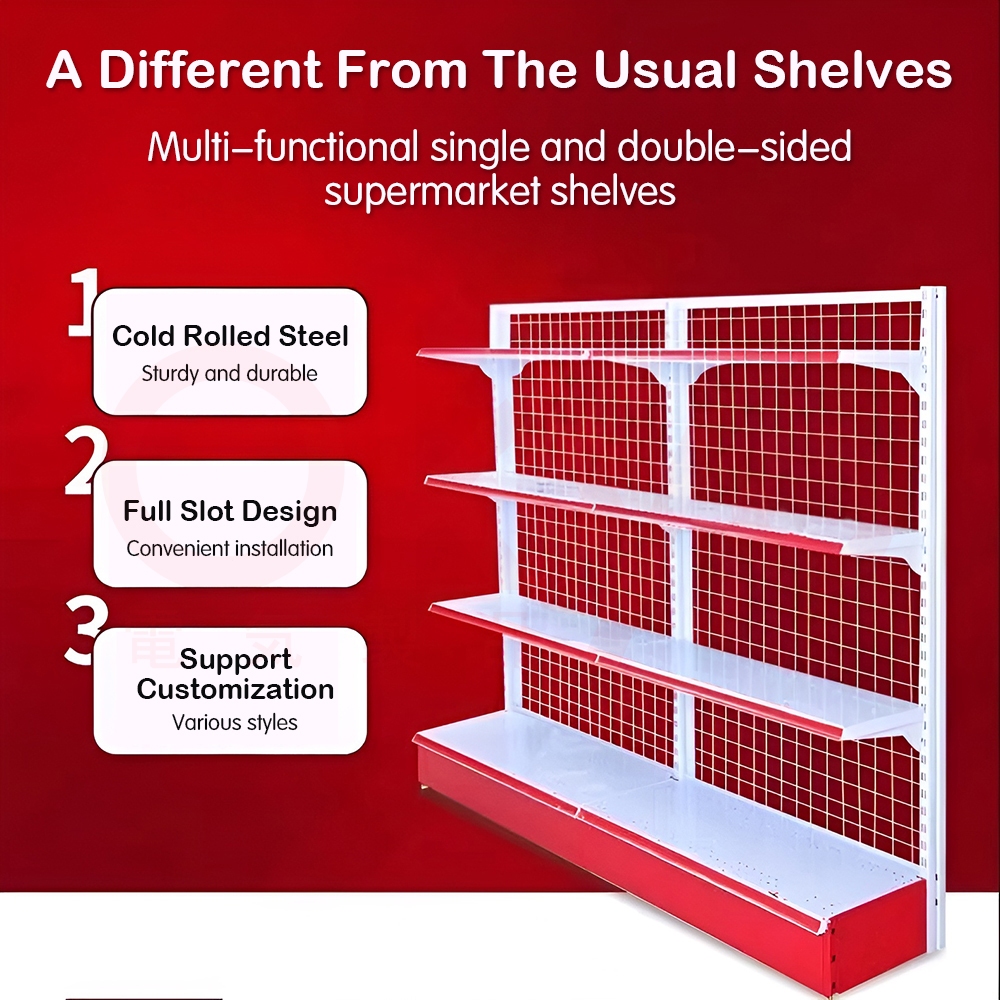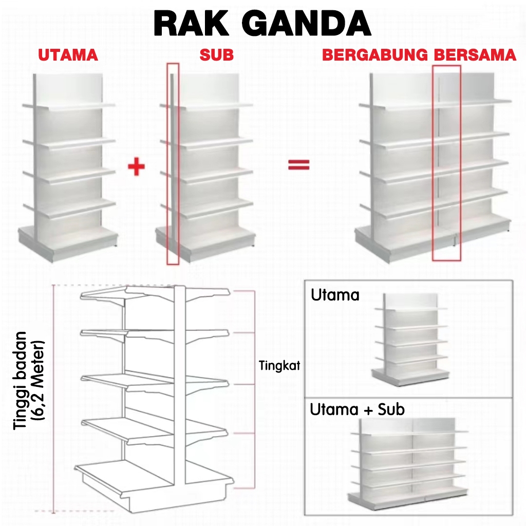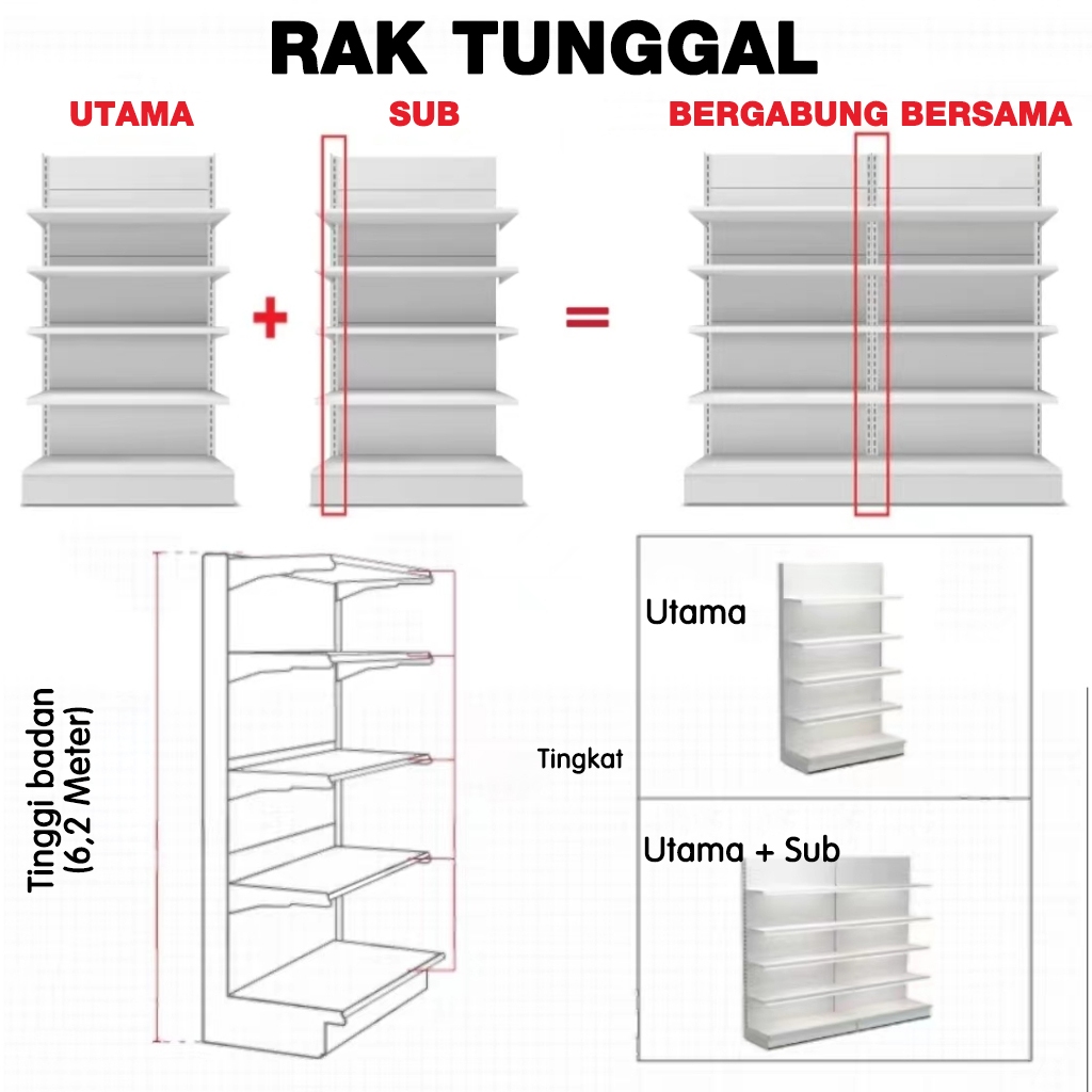 Rak Gondola / Rak Minimarket Tipe A3 Rak Susun Serbaguna 100 PERSEN Baja Stainless murni Rak Besi Susun Display Supermarket Rak display supermarket rak ruang