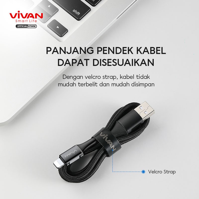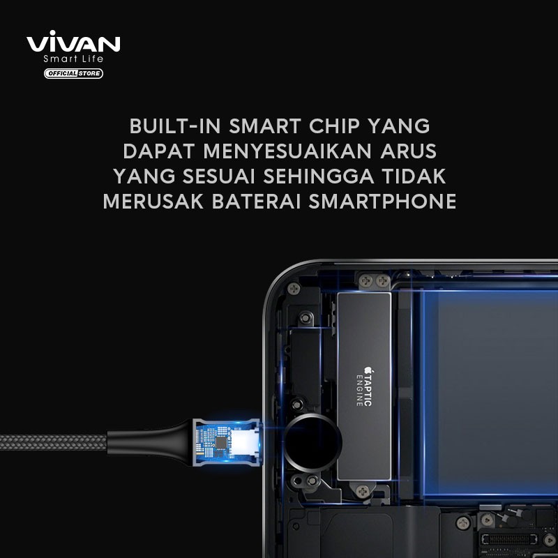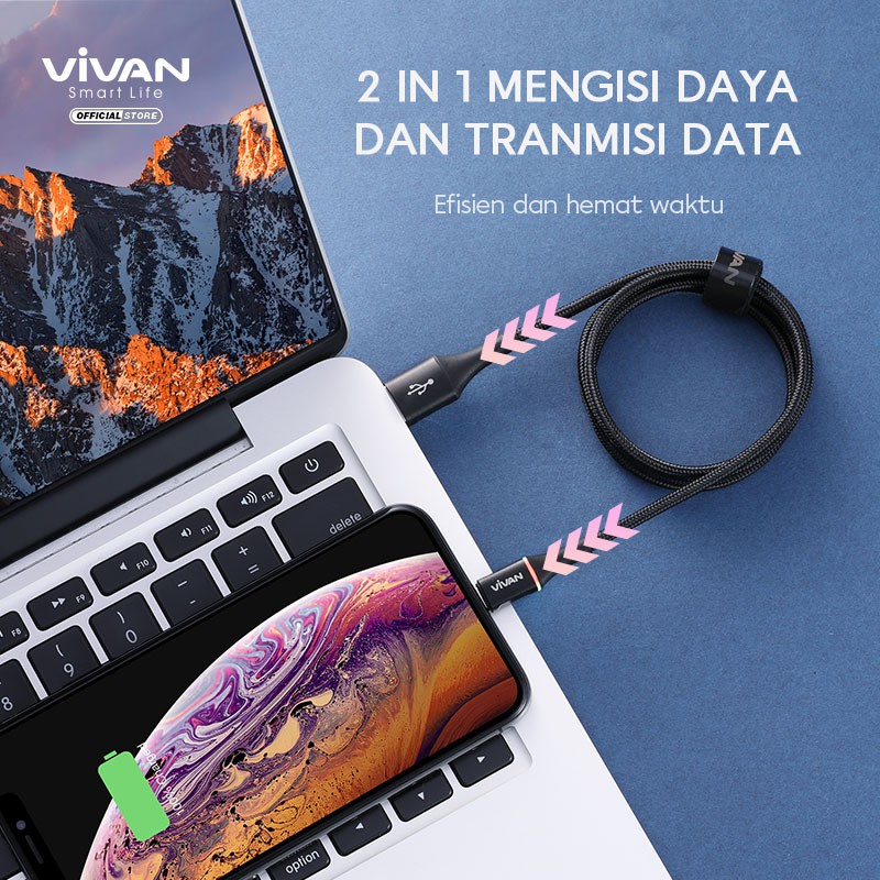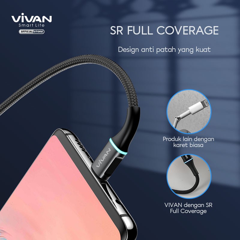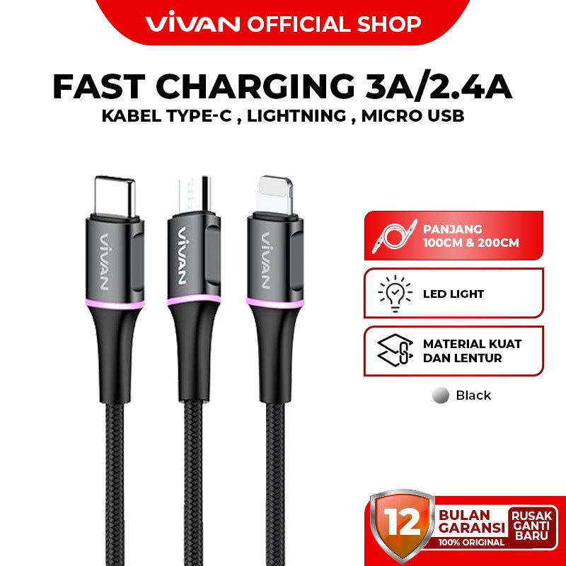 Kable Data Vivan Halo Micro USB/Type-C/Lightning 2.4-3A Quick Charge LED 100CM VDL100 Garansi Resmi 1 Tahun