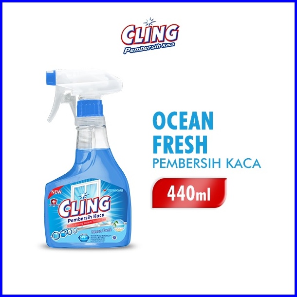 Cling Pembersih Kaca Biru Ocean Fresh Botol 440 Ml