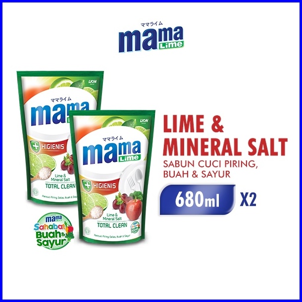 Mama Lime Sabun Cuci Piring Mineral Salt Pouch 680 Ml X2
