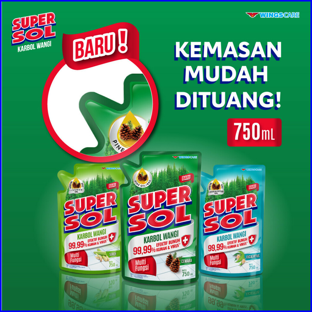 Supersol Pembersih Lantai Karbol Cemara Pine Pouch 750 Ml