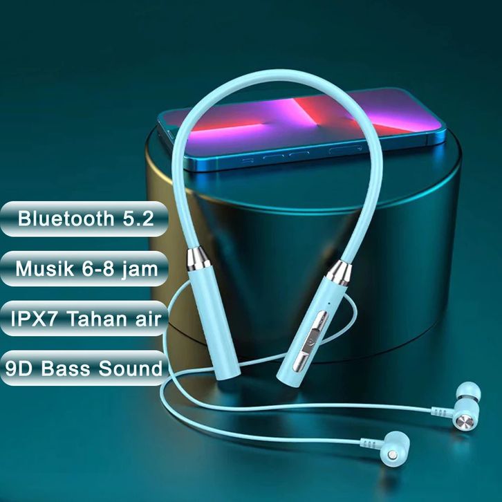 Headset Bluetooth Sport TWS – Neckband, Bass 9D, Waterproof, Mic Jernih, Nyaman Olahraga