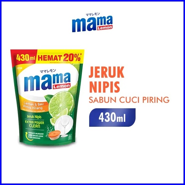 Mama Lemon Sabun Cuci Piring Jeruk Nipis Pouch 430 Ml X2