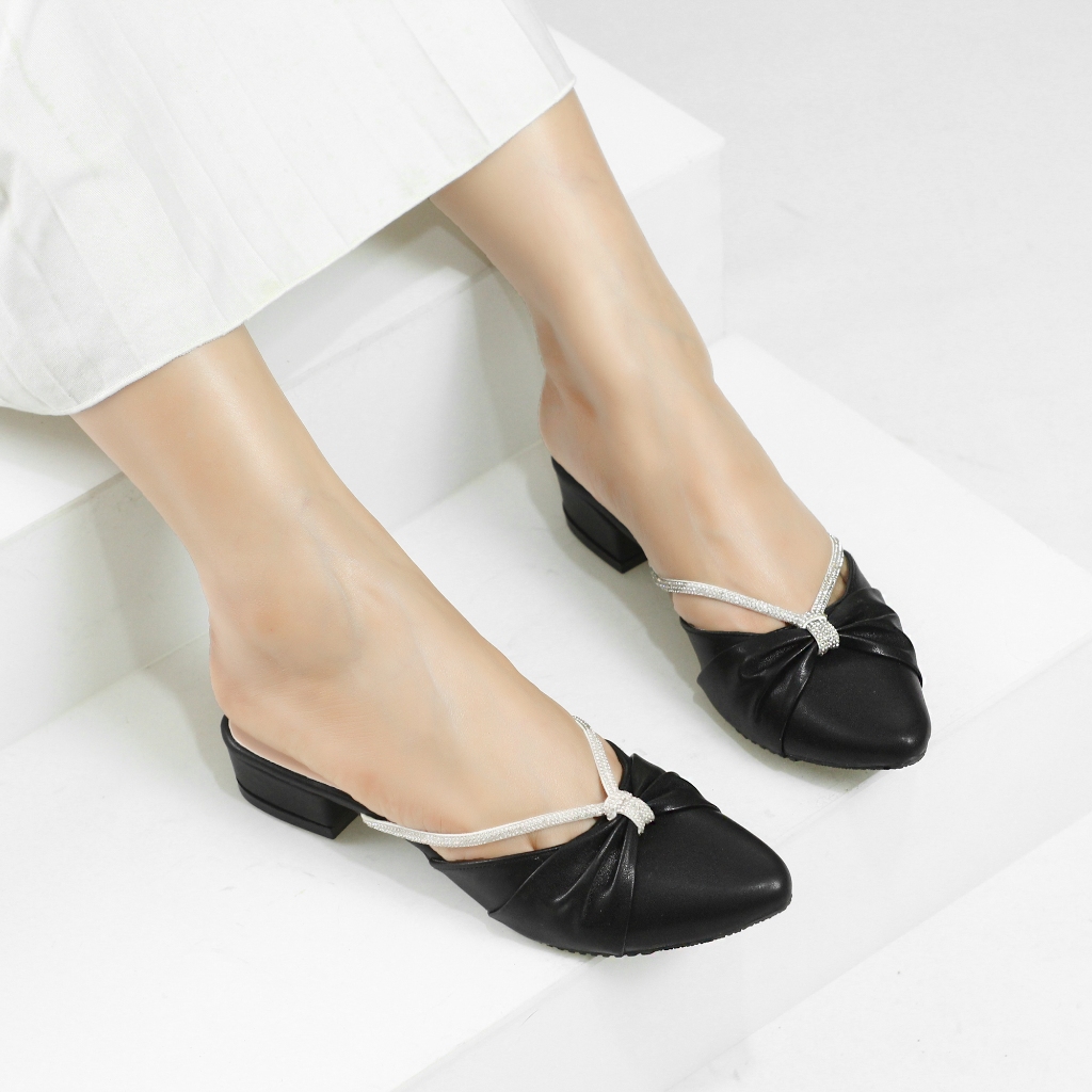 (Gratis Ongkir) Sandal Wanita Heels Mules Hak 3cm Elegan Kekinian DN 11