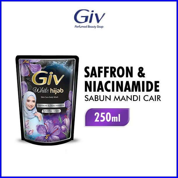 Giv White Hijab Sabun Mandi Cair Saffron Niacinamide Pouch 250 Ml