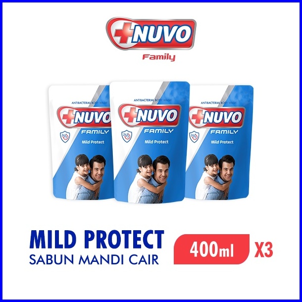 Nuvo Family Sabun Mandi Cair Biru Mild Protect Pouch 400 Ml X3 Melembabkan Dan Melembutkan Kulit