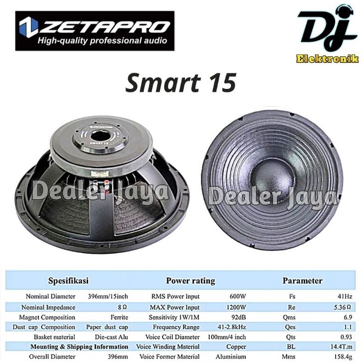 Speaker Komponen Zetapro SMART 15 / SMART15 - 15 inch