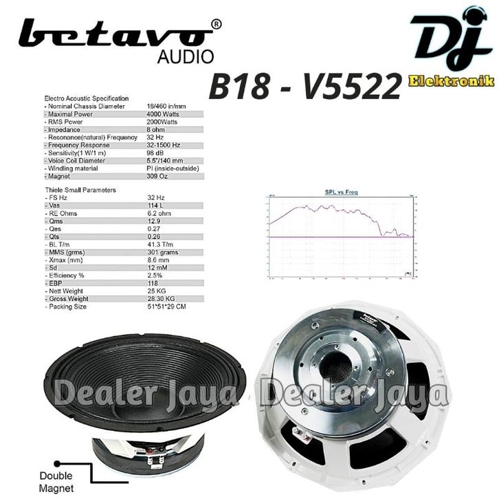 Speaker Komponen Betavo B18 - V5522 / B18V5522 - 18 inch