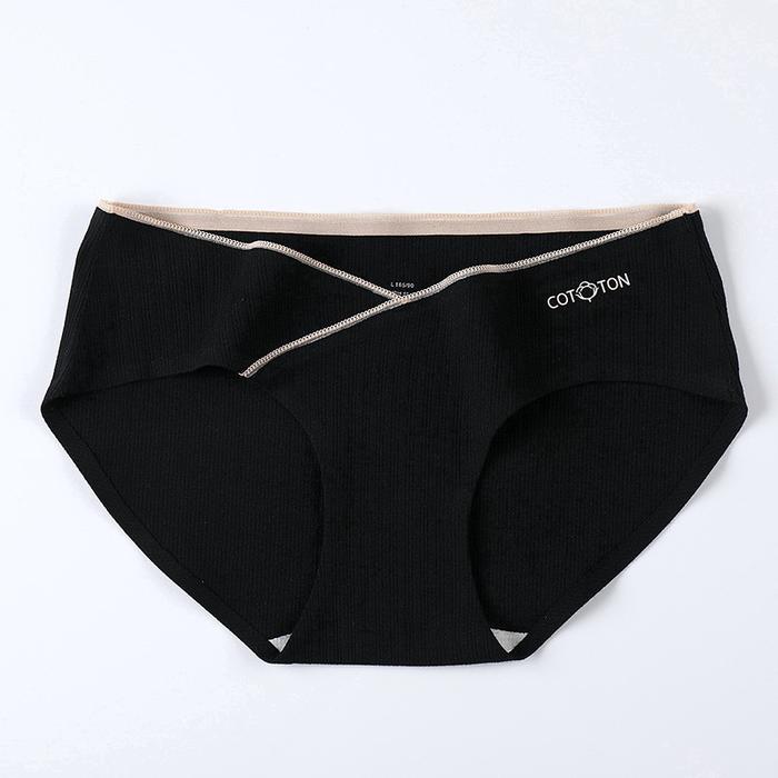 Celana Dalam Hamil Katun Anti Bakteri Dan Menyerap Keringat CD Wanita Pinggang Rendah Tanpa Jahitan - Hitam L