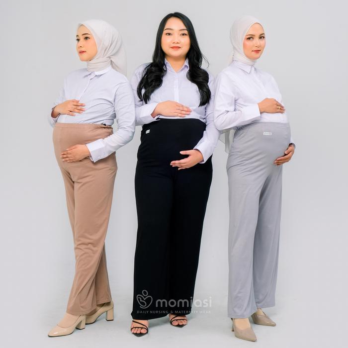 MOMIASI - Celana Hamil Kulot Rayon Bumil Friendly - HITAM L ( STANDAR )