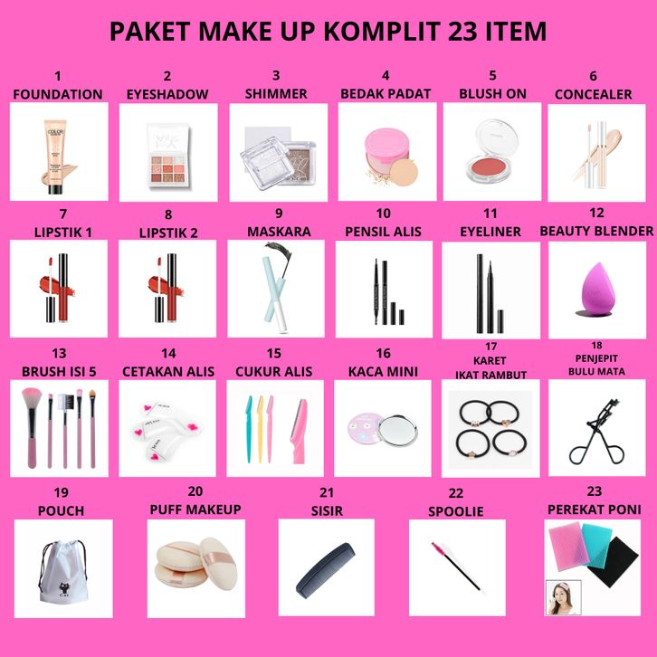Satu Set Make Up PAKET MAKEUP HEMAT TERLENGKAP KOSMETIK 23 ITEM SET MAKEUP TERMURAH DAPAT TOTAL 23 PCS