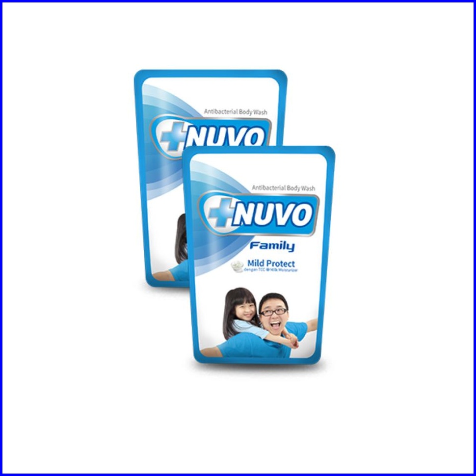 Nuvo Family Melembutkan Kulit Sabun Mandi Cair Biru Mild Protect Pouch 400 Ml X2