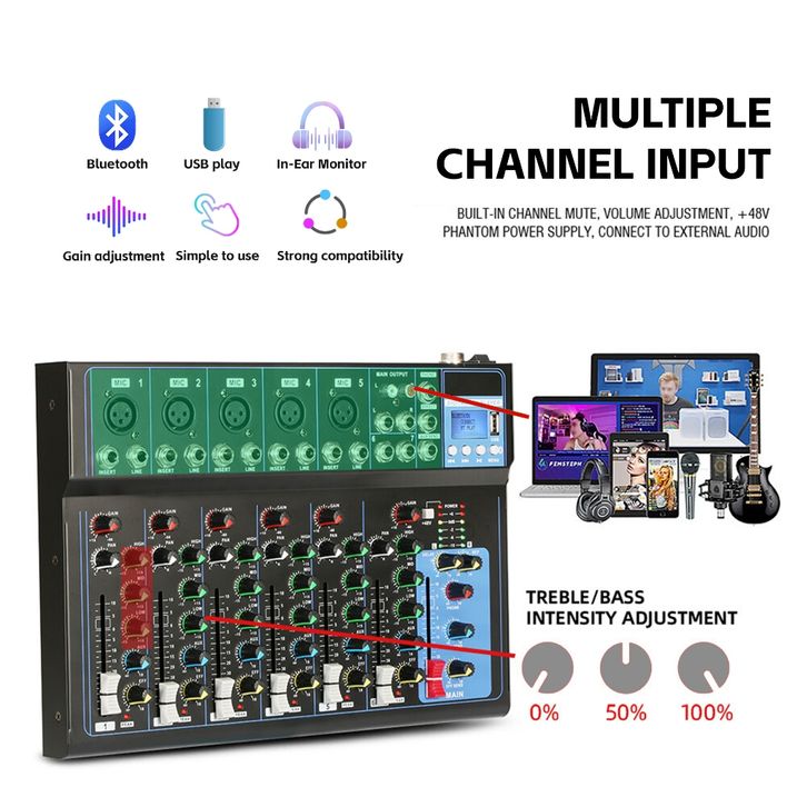 Mixer AUDIO F07BT F04BT 7 4 channel CS4 MIXER mendukung peralatan audiopemutaran Bluetooth MP3 USB Audio Mixer 4 Channel