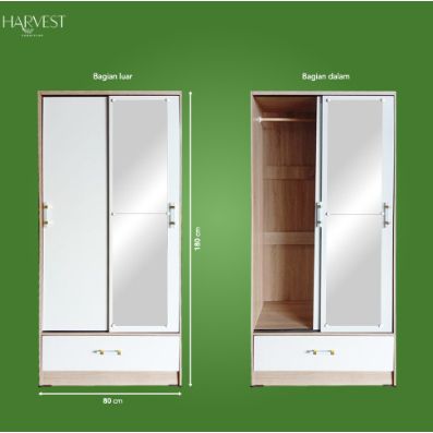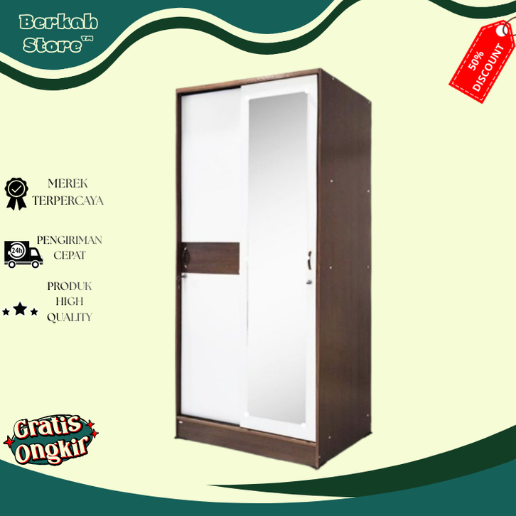 Lemari Pakaian Baju 2 Pintu Sliding Murah Modern Minimalis GRATIS ONGKIR