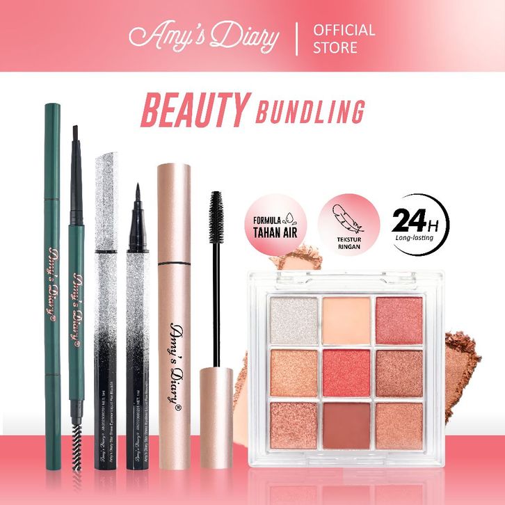 Satu Set Make Up AMY'S DIARY 4 Pcs Bundling Eye Makeup Set Eyeshadow Mascara Eyeliner Eyebrow Long-lasting Waterproof