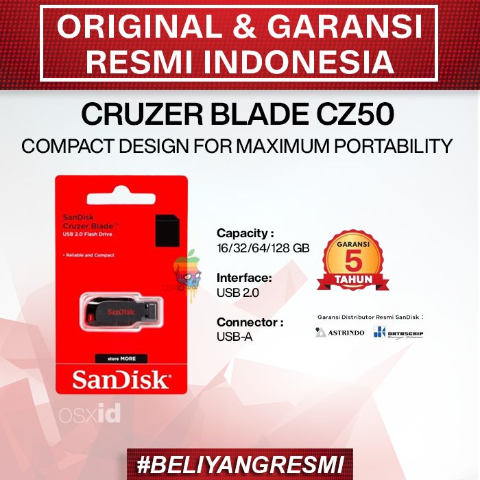 Flashdisk Sandisk Cruzer Blade CZ50 / Ultra Shift CZ410 - 16GB / 32GB / 64GB / 128GB / 256GB - Original - Garansi Resmi
