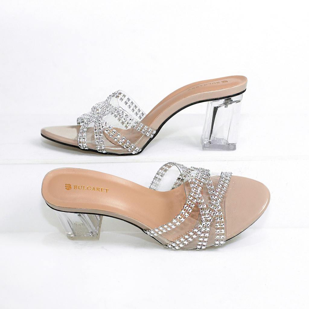 (Gratis Ongkir) HIGH HEELS WANITA KACA TALI PERMATA R 58