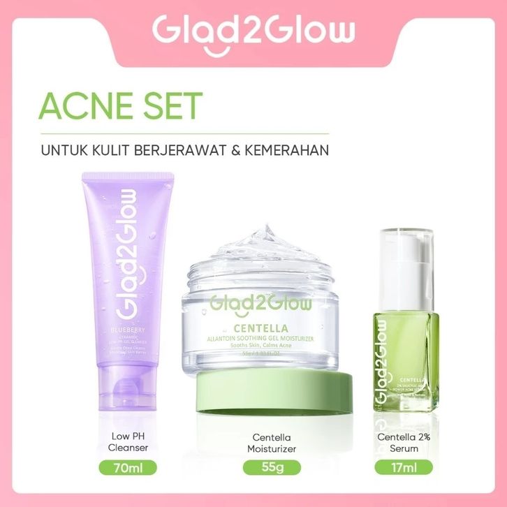 Glad2Glow SPECIAL BUNDLE 3in1 3pcs Paket Skincare Moisturizer Serum Face Wash GLOWING KIT Dark Spot ACNE KIT
