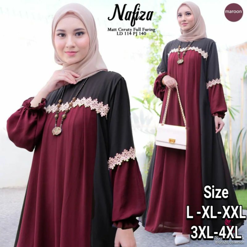 GAMIS LEBARAN 2025 MODEL GAMIS TERBARU NAFIZA DRESS L XL XXL 3XL 4XL CERUTY BABYDOLL FULL FURING