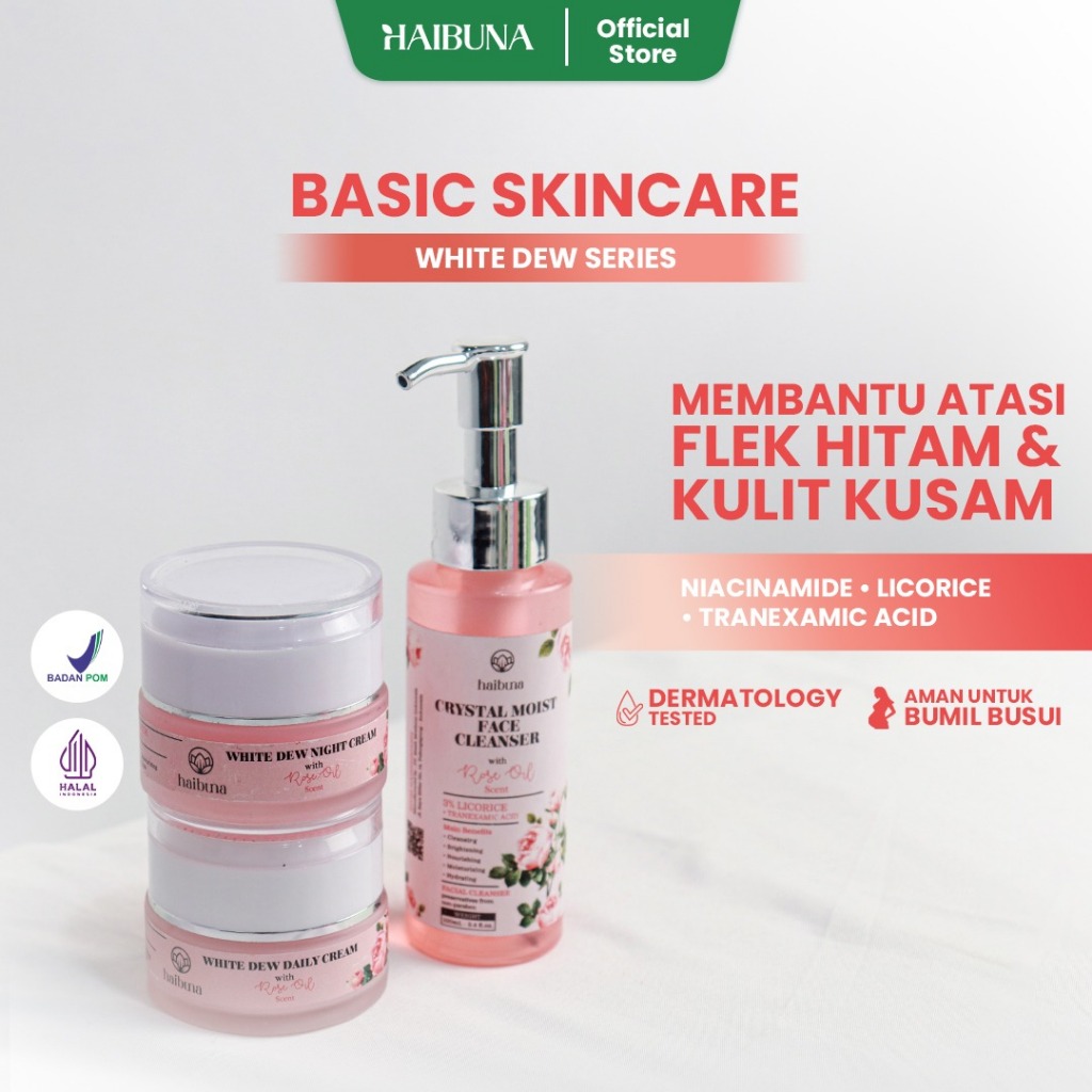 [Mall] SKINCARE Haibuna Paket Basic White Dew | 1 Facewash 1 Daily Cream 1 Night Cream | Haibune White Dew Series