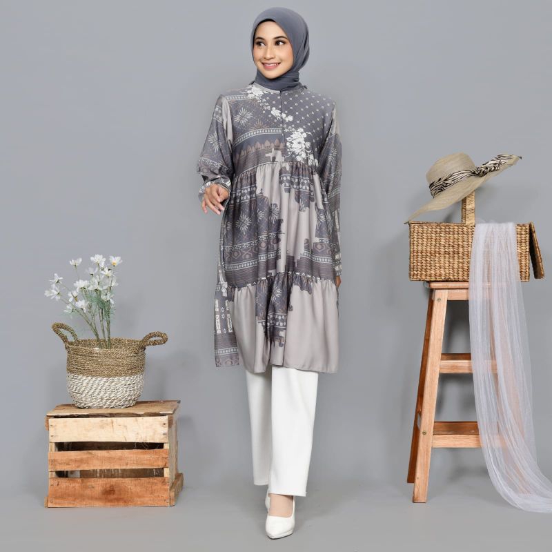 MIDI DRESS WANITA JUMBO L XL XXL XXXL XXXXL 5L BIG SIZE LD 100 110 120 130 140 MODEL ABSTRAK LONG TUNIK KEKINIAN MODERN