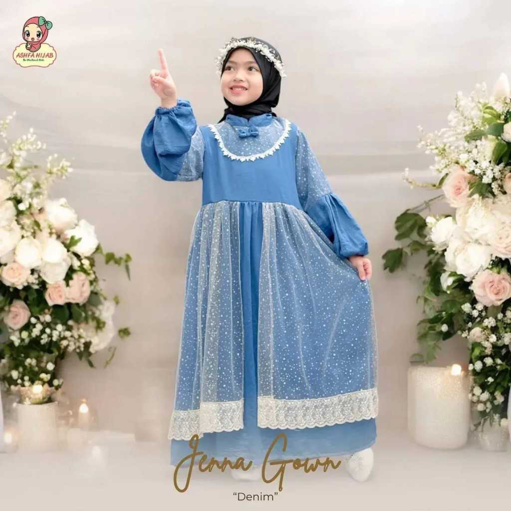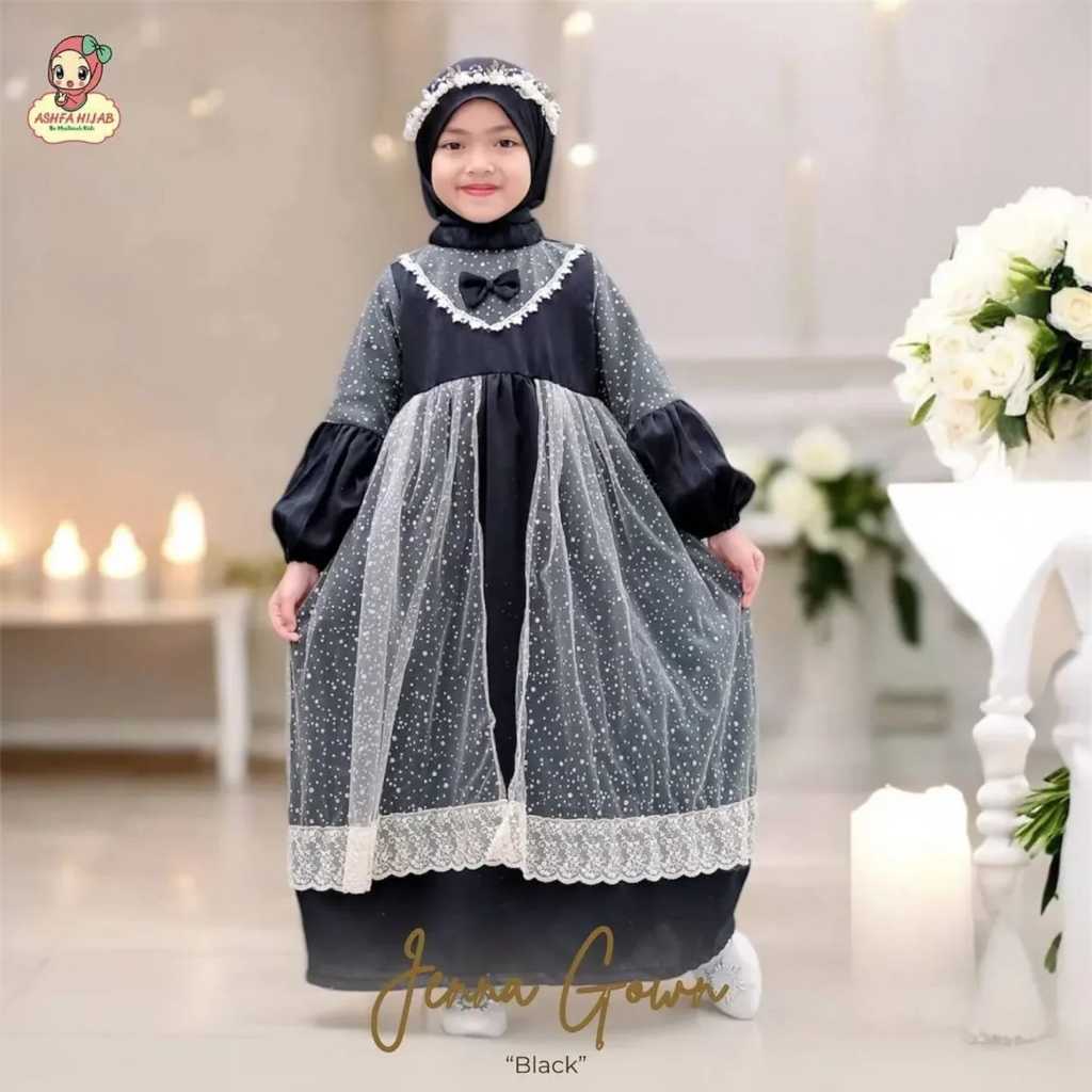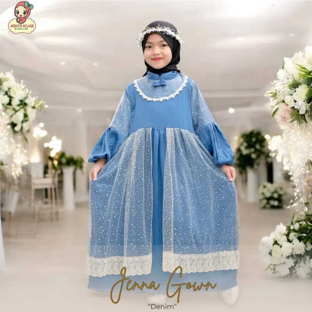TERBARU GAMIS ANAK JENA KIDS BAHAN CRINCLE MIXTULLE RAINDROP+RENDAFYI RESLETING BELAKANG USIA 8 -11TAHUN MUSLIM