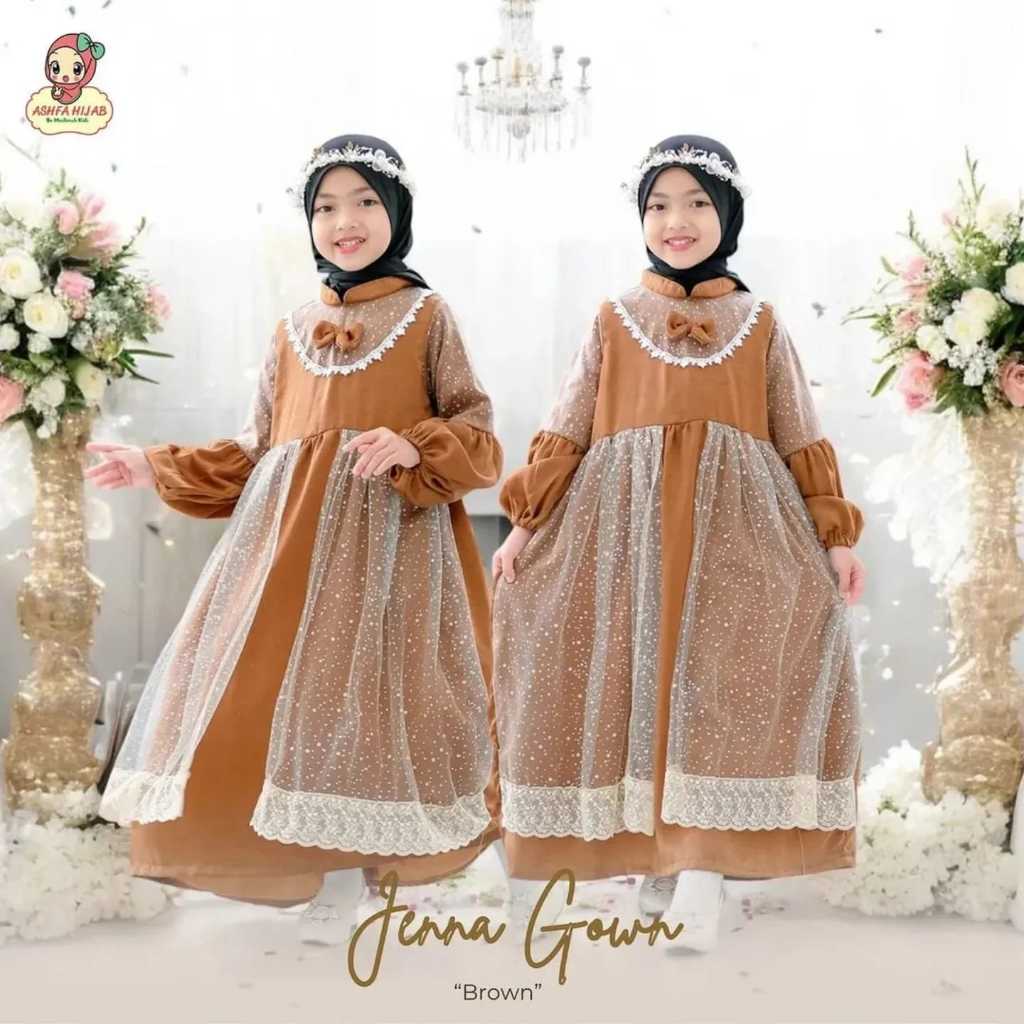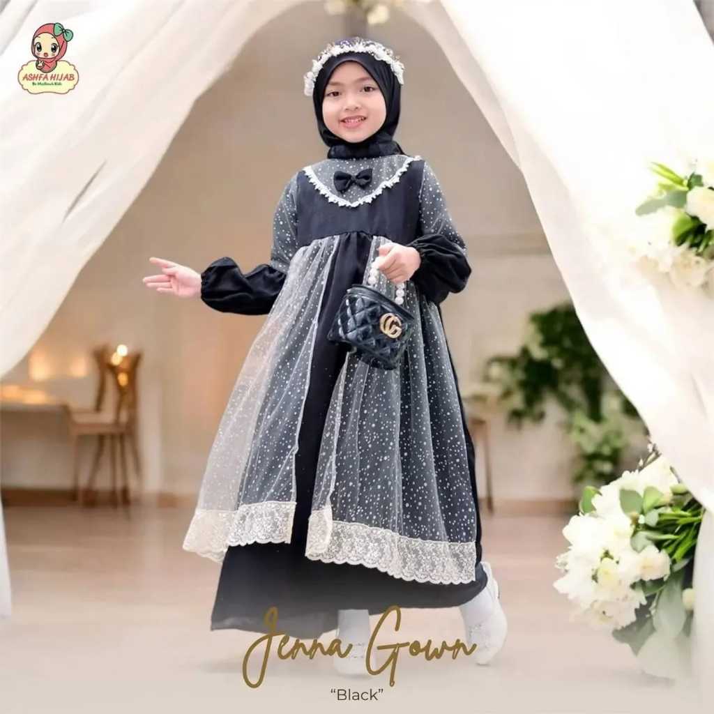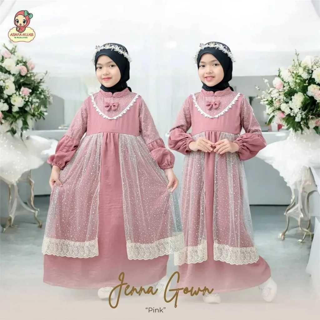 TERBARU GAMIS ANAK JENA KIDS BAHAN CRINCLE MIXTULLE RAINDROP+RENDAFYI RESLETING BELAKANG USIA 8 -11TAHUN MUSLIM