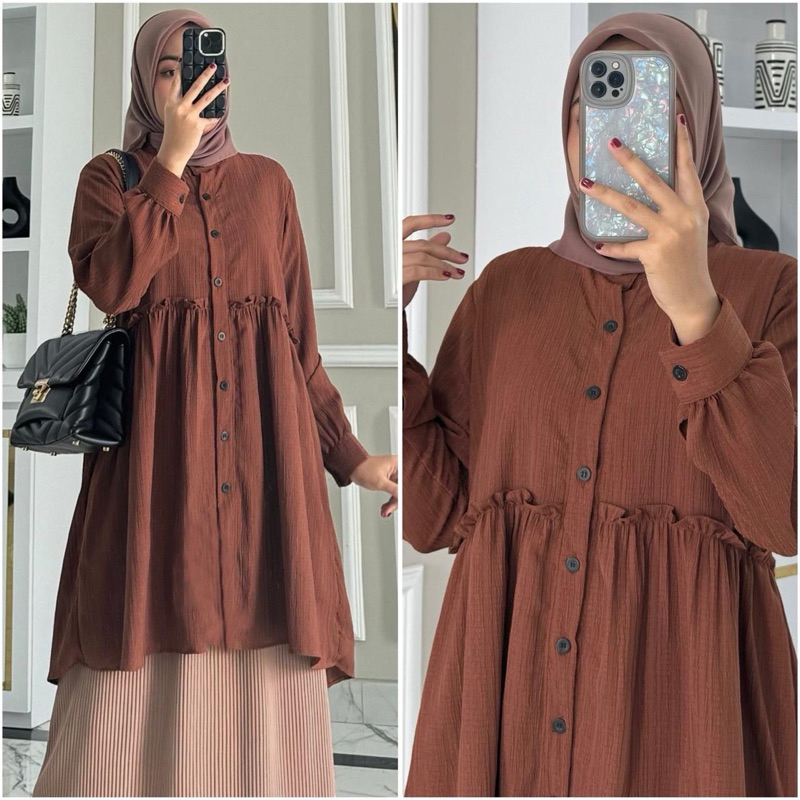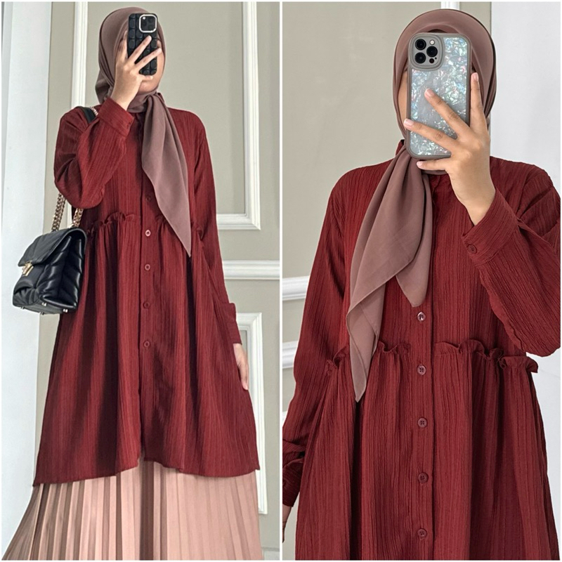 AMINA tunik by ZALFA OUTFIT / Baju Atasan Wanita muslim Tunik basic polos lady crush premium lengan panjang