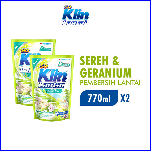 Soklin Pembersih Lantai Sereh Geranium Pouch 770 Ml X2
