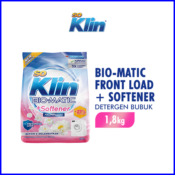 Soklin Biomatic Deterjen Bubuk Softener Bukaan Depan 1 8 Kg