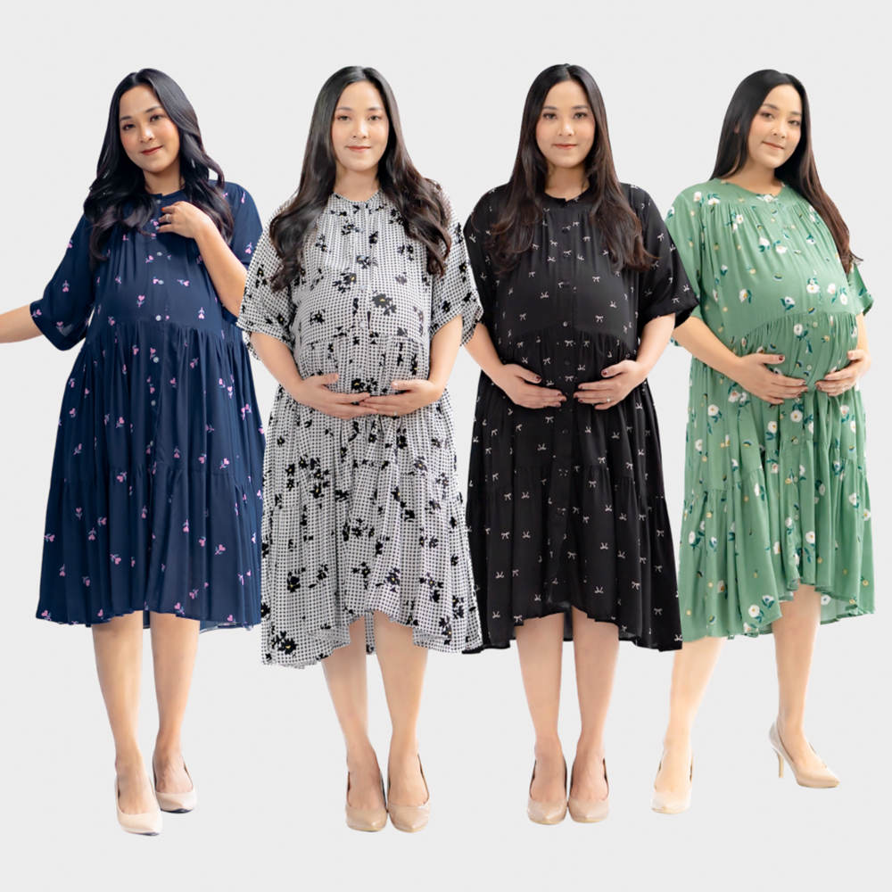 Bajuboo Sara - Daster Busui & Bumil Friendly Rayon Polo Linen Ruffle lengan pendek