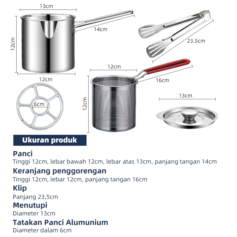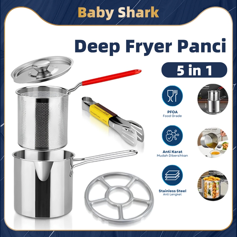 Deep Fryer 5in1 Panci Multi Set Panci Rebus Penggorengan Stainless Steel Bisa Goreng Dan Rebus