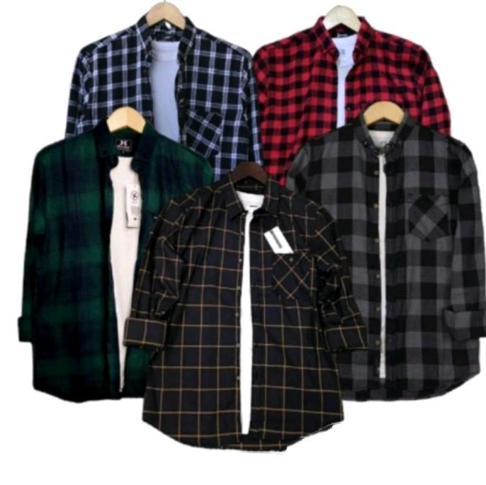 kemeja flanel kekinian pria wanita premium Outfit kece viral masa kini size MLXL V