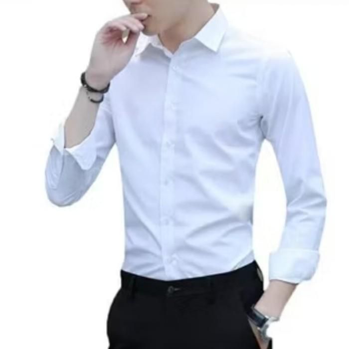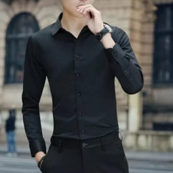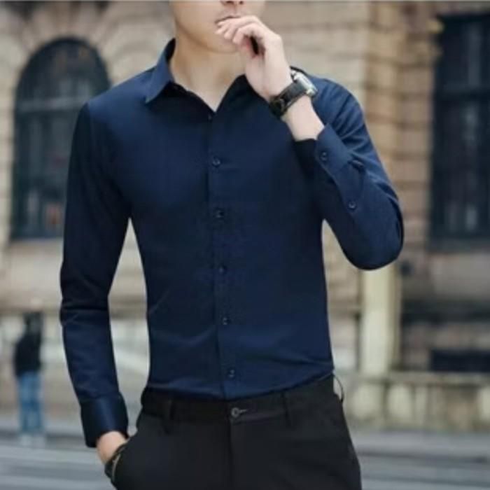 baju kemeja polos pria lengan panjang kemeja kerja kantoran casual aqs_182