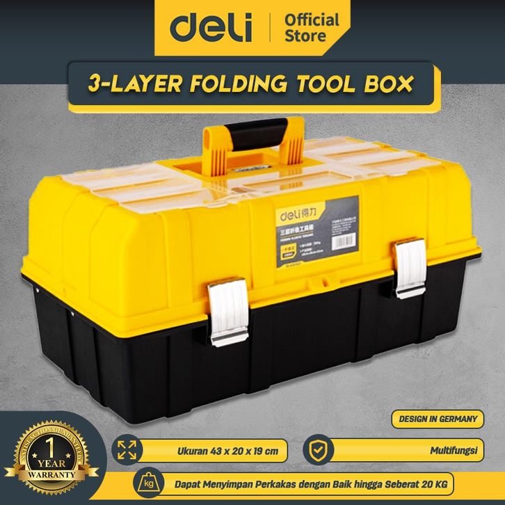 Deli 3-Layer Folding Tool Box / Kotak Perkakas 3 Tingkat Panjang 43 CM Kapasitas 20 KG DL432117