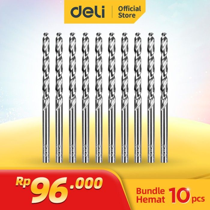 Paket Hemat Deli Mata Bor Besi HSS 5mm 1 Pack 10 Pcs EDL16050G
