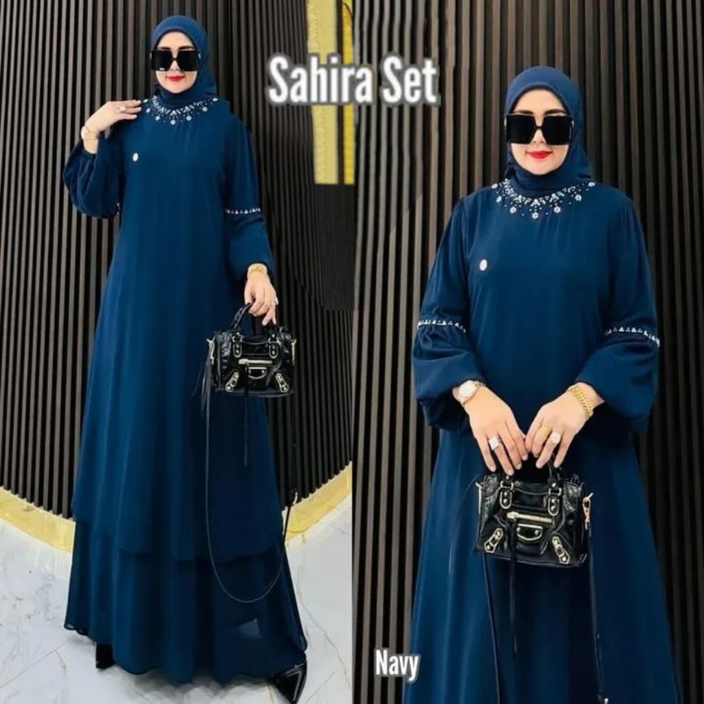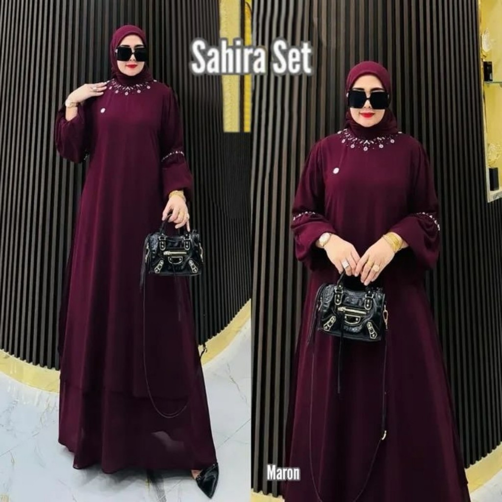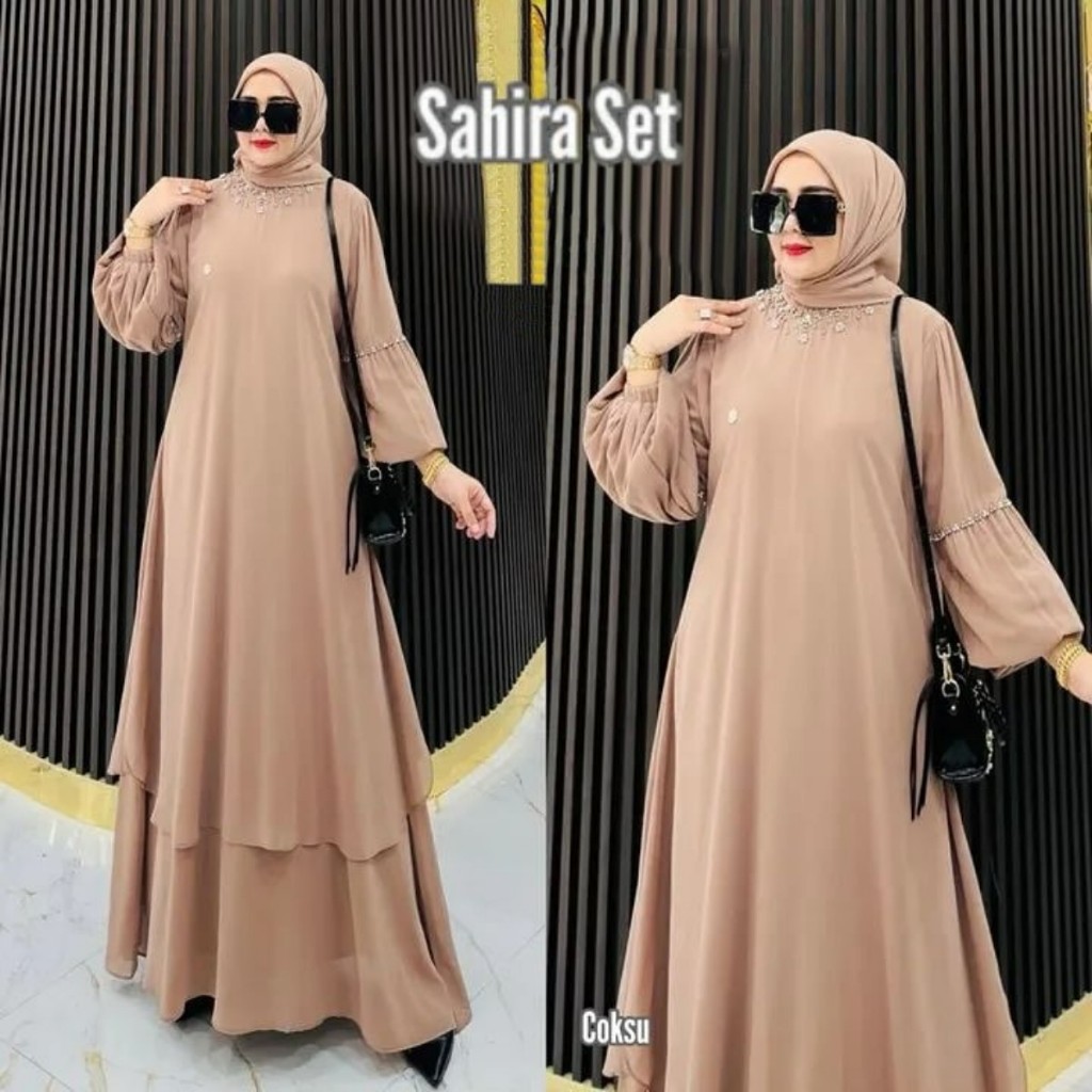 STELAN BAJU DAN ROK SAHIRA BABYDOLL CERUTY - UKURAN M FIT L - MUSLIM GAMIS WANITA