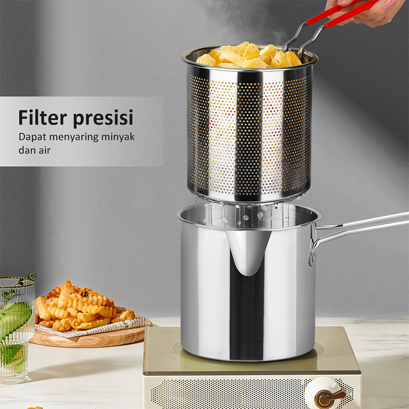Deep Fryer 4in1 Multi Stainless Steel 304 Panci Penggorengan Kentang Saringan Minyak dan Capitan Makanan Multifungsi