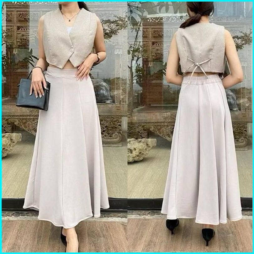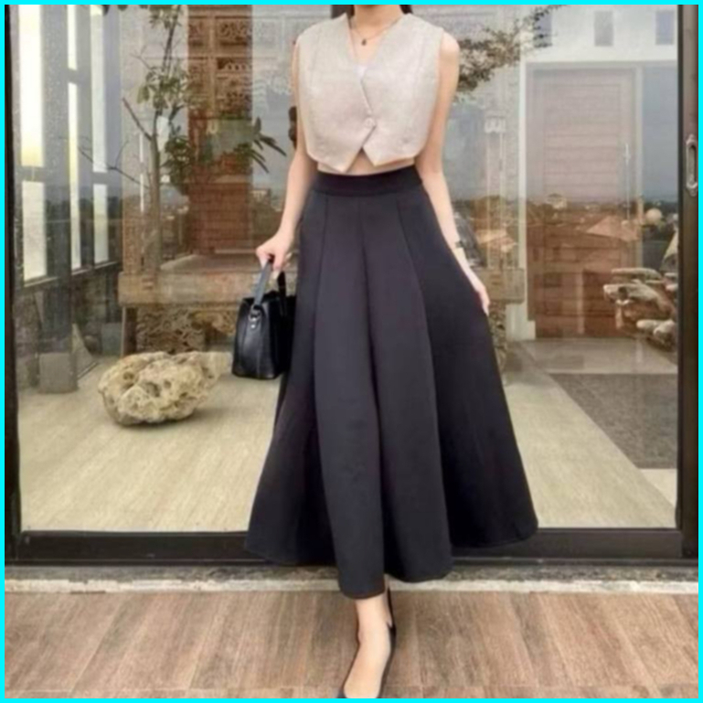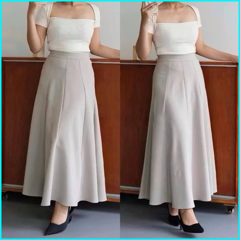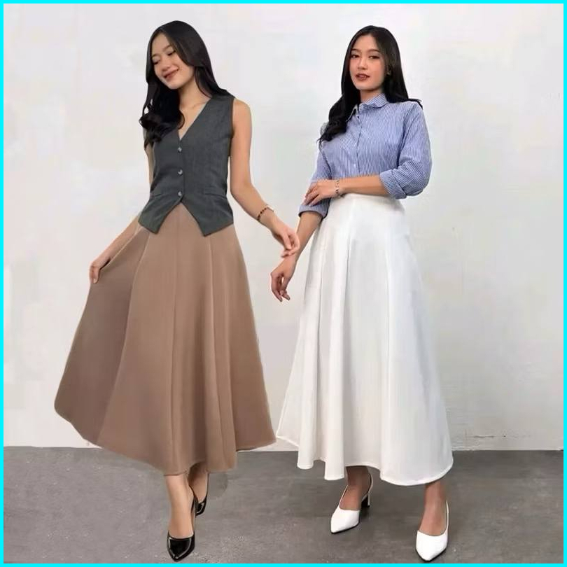 Audy Skirt - Korean Loose Maxi Skirt Rok Wanita Anti Kusut Polyester - Rok Flare Wanita - Rok Basic Polos - Maxi Rok Pan